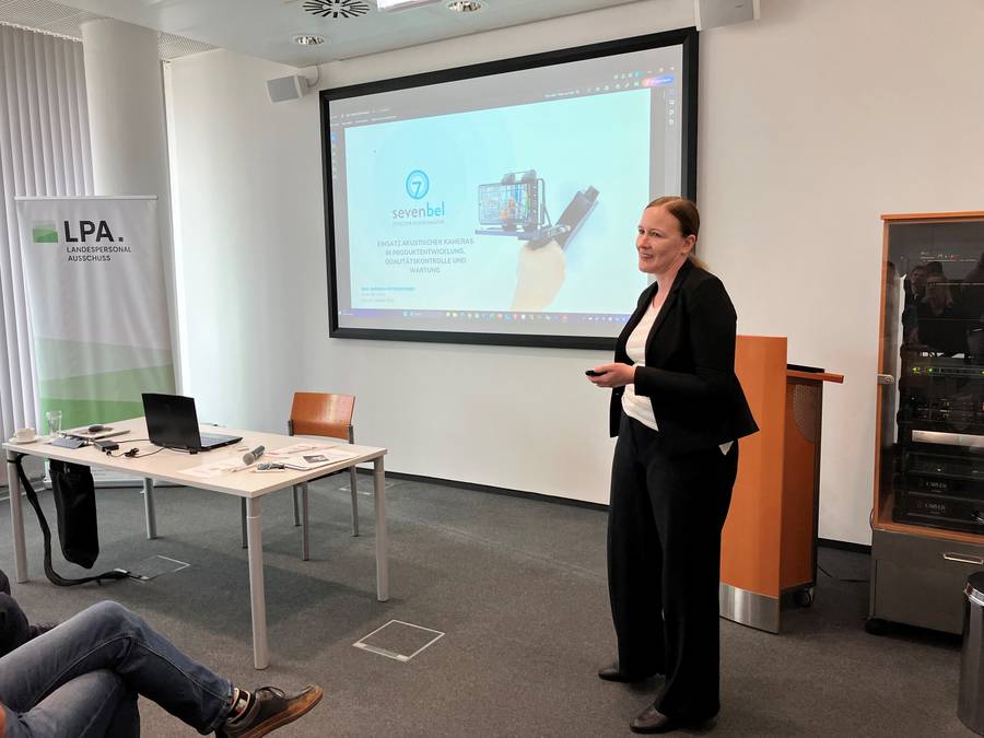Ebenfalls vertreten war Barbara Rittenschober, von Seven Bel, einer Firma mit akustischen Kameras Schallemissionen sichtbar zu macht. Seine innovative Technologie revolutioniert den Umgang mit Lärm und Geräuschen und bietet neue Lösungen für zahlreiche Branchen.