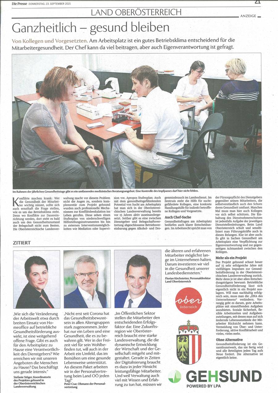 Den gesamten Artikel zur Gesundheitsförderung im OÖ Landesdienst finden Sie hier.