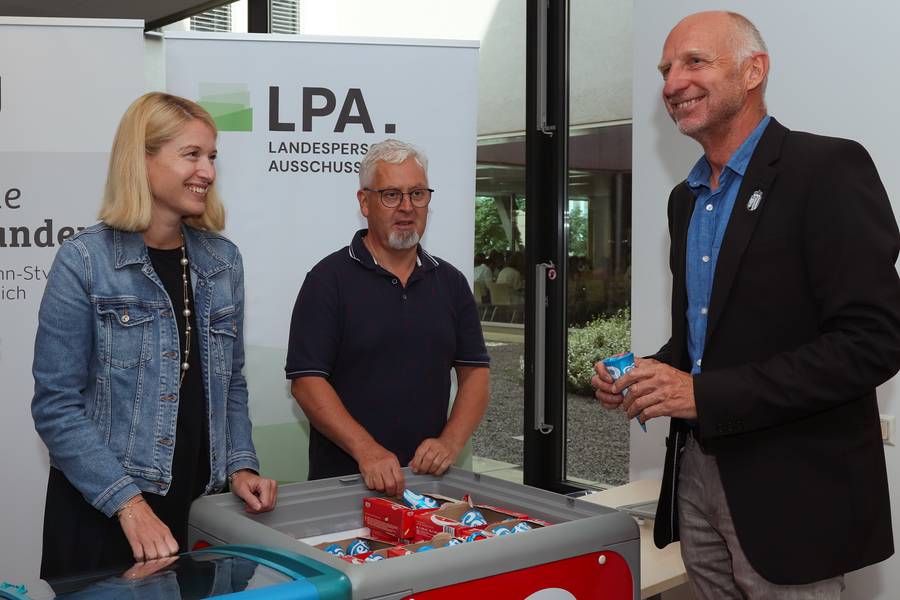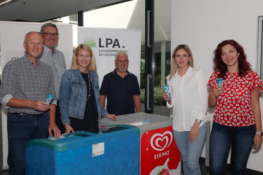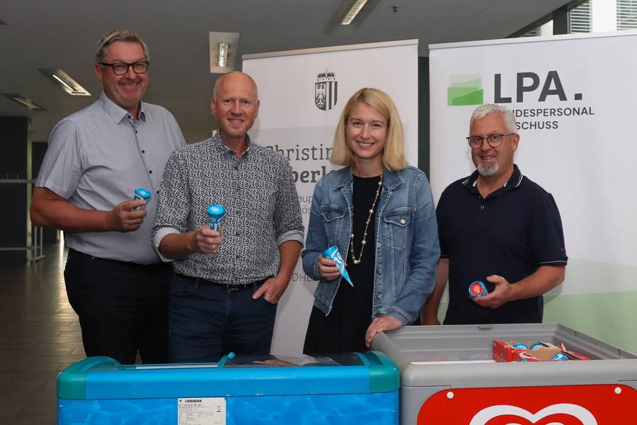 Erdbeere oder Vanille? Das war die Frage bei der heutigen Eisverteilaktion vor der Betriebsküche im LDZ. Gemeinsam mit LH Stv.in Christine Haberlander sorgte der LPA für ordentlich Abkühlung und die richtige Nachspeise für Schleckmäuler. Wir hoffen, dass das Eis allen geschmeckt hat und wünschen allen Kolleg:innen einen schönen Sommer!
