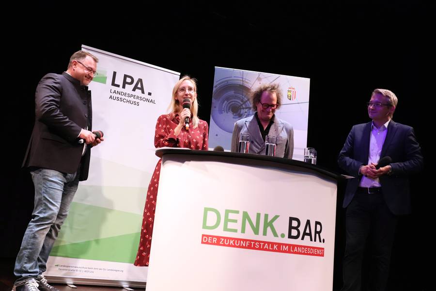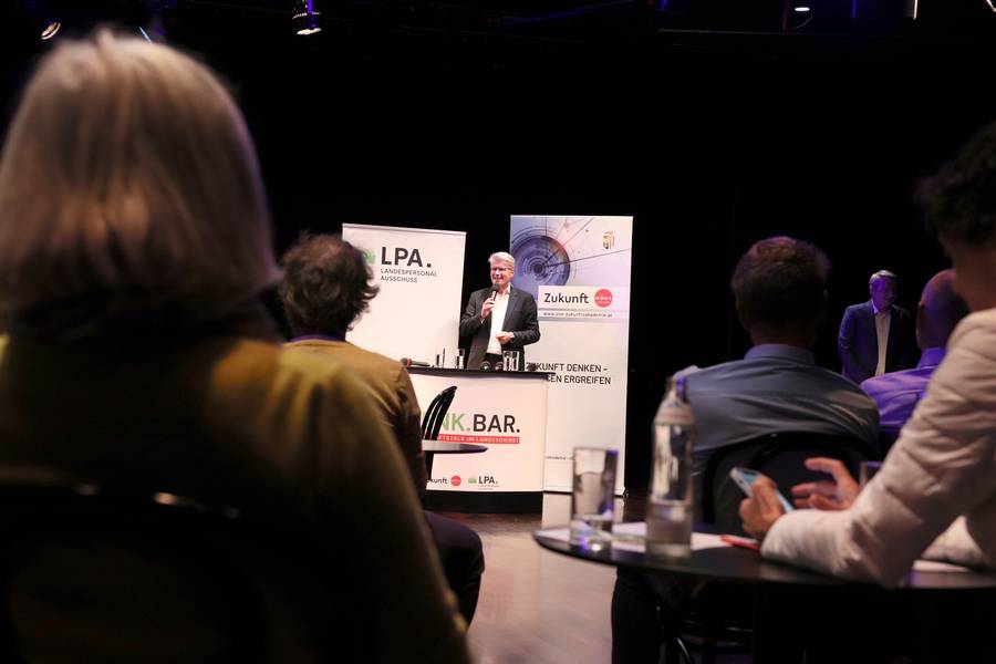 Mit dieser spannenden Frage setzten sich Markus Larndorfer (Landespersonalausschuss) und Mag. Dr. Johann Lefenda (Oö. Zukunftsakademie) mit Mag.a Margot Nazzal (Leiterin der Direktion Kultur und Gesellschaft) sowie Mag. art. Norbert Trawöger (Künstl. Leiter oö. KulturEXPO „Anton Bruckner 2024“ & Künstl. Direktor Bruckner Orchester Linz) bei der fünften Denk.Bar., welche am Donnerstag, 26. September 2024 unter dem Titel "Locus iste: Was Bruckner uns heute zu sagen hat? Ideen für den Landesdienst" stattfand, auseinander. Zu Gast sein durften wir diesmal im Foyer der Blackbox im Musiktheater. Wie immer war es ein spannender Talk mit tollen Gästen.
