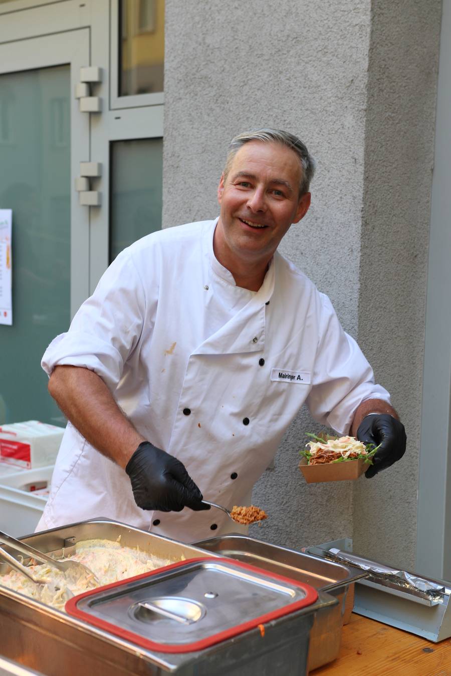 Für das leibliche Wohl sorgte das engagierte Team des Betriebsrestaurants LDZ mit einer Auswahl an kulinarischen Highlights: Eine vegane Asia-Nudelpfanne überzeugte ebenso wie herzhafte Bratwürstel mit Sauerkraut und Semmerl oder der beliebte Pulled-Pork-Burger – für jeden Geschmack war etwas dabei.